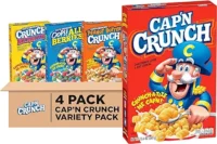 Includes 4 Large Size boxes of Cap'n Crunch Breakfast Cereal: (1) Original (1) Crunchberries (1) Oops All Berries (1) Peanut Butter